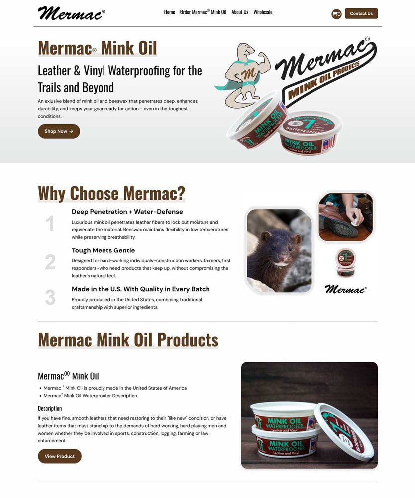 Mermac Mink Oil needed more than a website - they needed a system to support their growing wholesale business. I designed and built a new ecommerce website that showcases their leather care products and provides a smooth retail shopping experience.