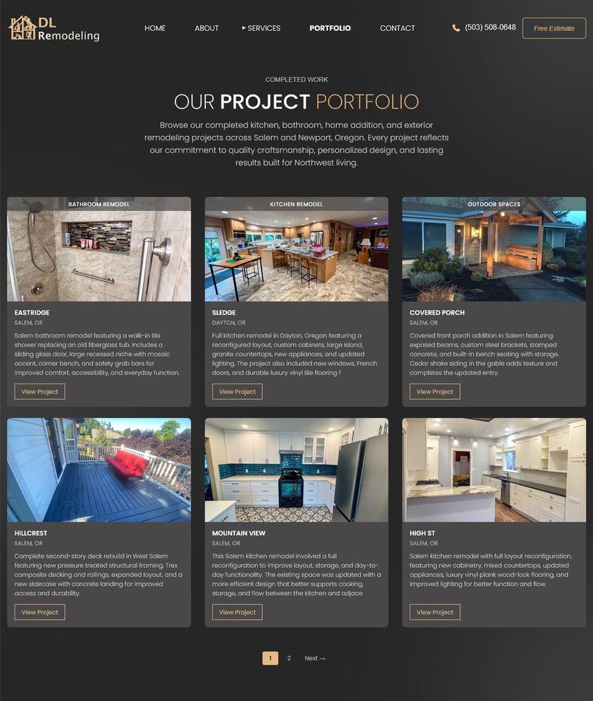 Instead of relying on a handful of static service pages, the site is powered by a system that turns every completed job into its own search-optimized page. That means each kitchen remodel, bathroom upgrade, or home addition becomes another opportunity to be found on Google.