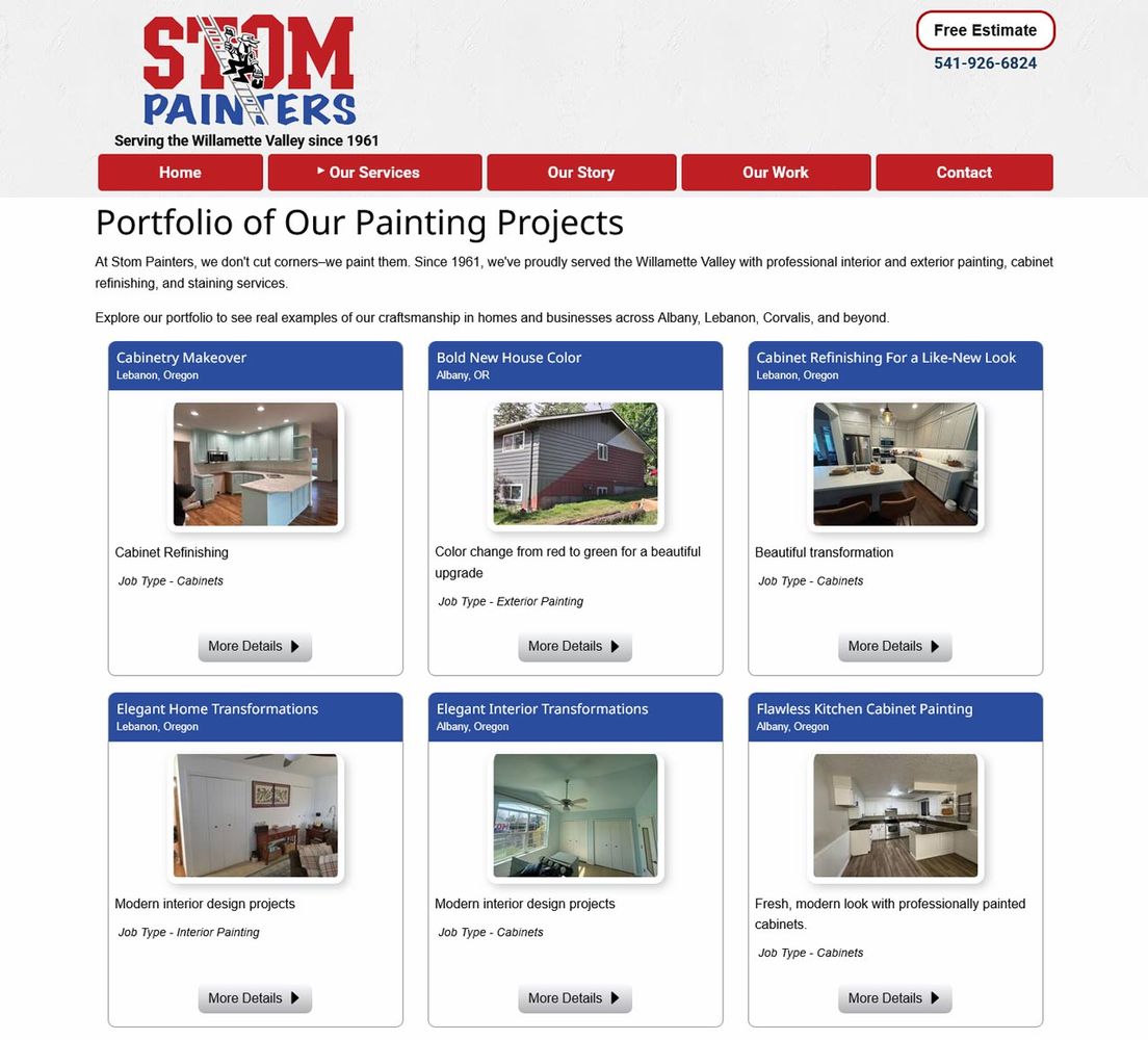 This redesign positions Stom Painters for long-term online success by combining technical best practices with flexible content management and a strong focus on local SEO.