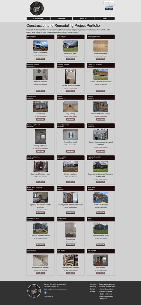 Custom website for a construction company in Edmonton Kentucky. Basic but competent design to keep the costs down. This site goes from good to great with the addition of our portfolio system that allows the website owner to easily add their projects.