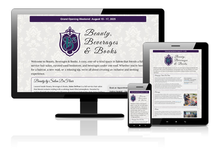 This single page site was built to launch a creative new business blending salon services, specialty drinks, and a curated used bookstore in downtown Salem. It’s a fun, mobile-friendly starter site that captures the unique personality of the brand and helps visitors quickly understand what makes B3 in Oregon special.
